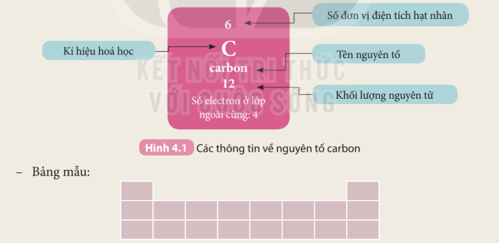 1. Quan sát Hình 4.3 và cho biết tên, kí hiệu hóa học và điện tích hạt nhân của nguyên tử các nguyên tố xung quanh nguyên tố carbon