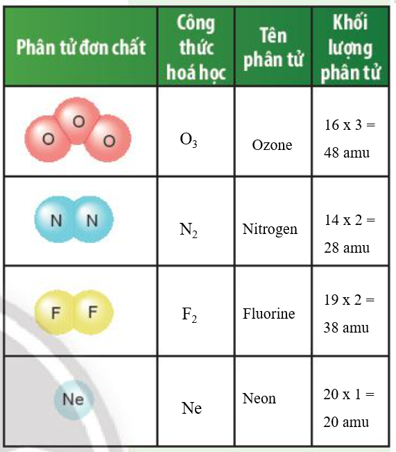- Khối lượng phân tử = tổng khối lượng các nguyên tử tạo nên phân tử đó
