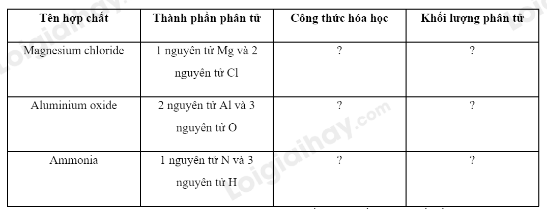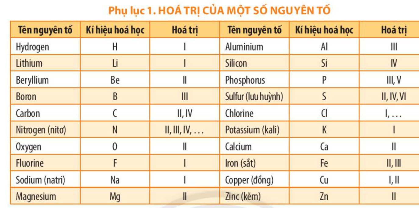 Dựa vào bảng hóa trị ở Phụ lục trang 187, em hãy hoàn thành bảng sau: