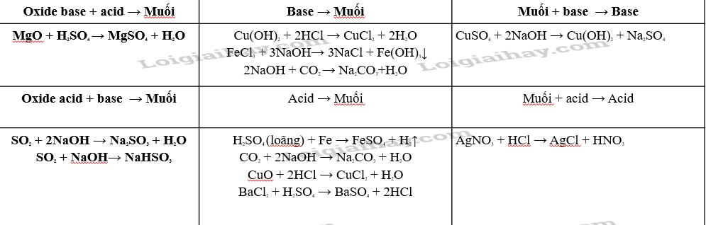 + Dung dịch acid tác dụng với oxide base;