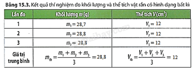 Giả sử, ta thực hiện thí nghiệm với một hòn sỏi. Làm theo các bước ta thu được bảng 15.3 như sau: