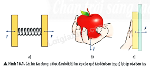 Trong Hình 16.1, các lực tác dụng trong hình đều có phương vuông góc với bề mặt bị ép.