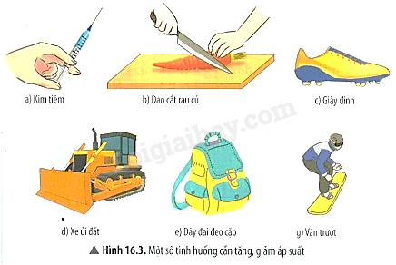 - Việc tăng, giảm áp suất trong các tình huống ở Hình 16.3 giúp các công việc được diễn ra suôn sẻ hơn hoặc mục đích sử dụng các dụng cụ được tốt hơn.