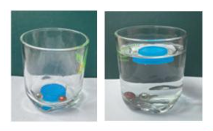 1. Nắp chai nhựa lại nổi lên còn viên bi, ốc vít kim loại thì vẫn nằm ở đáy cốc vì