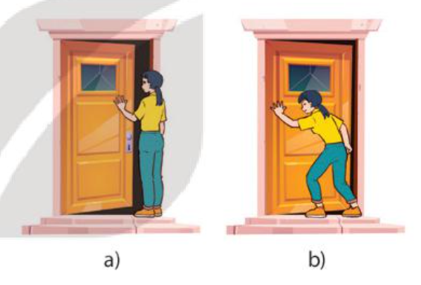 Tại sao khi đẩy nhẹ cửa, tay ta đặt xa các bản lề của cánh cửa (hình a) thì mở cửa sẽ dễ dàng hơn khi đặt tay gần bản lề (hình b)?