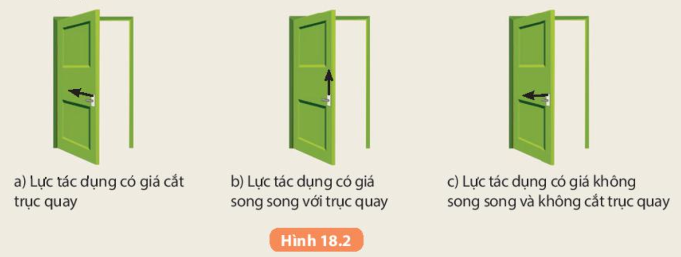 1. Tác dụng lực vào vị trí nào trong hình 18.3 có thể làm tay nắm cửa quay quanh trục của nó? Vị trí nào làm tay nắm cửa không quay quanh trục của nó?