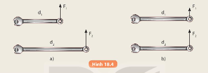 Hình 18.4a: Moment của lực F1 nhỏ hơn Moment của lực F2 vì giá của lực F1 nhỏ hơn lực F2