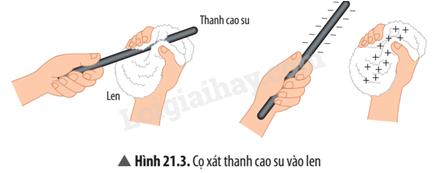 b. Sau khi cọ xát thanh cao su nhiễm điện âm, len nhiễm điện dương.