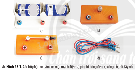 - Hình 23.1 c) công tắc là thiết bị đóng/ ngắt mạch điện hay bật/ tắt các thiết bị tiêu thụ năng lượng điện.