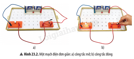 Bước 2: Đóng công tắc (Hình 23.2b). Quan sát bóng đèn.