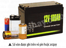 - Trên nhãn mác của pin hoặc acquy luôn ghi rõ số vôn. Con số này cho biết khả năng sinh ra dòng điện của pin hoặc acquy.