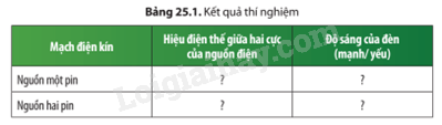 Thực hiện thí nghiệm ta thu được Bảng 25.1 như sau: