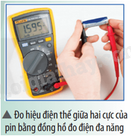 Để đo hiệu điện thế giữa hai cực của pin bằng đồng hồ đo điện đa năng ta làm như sau: