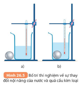 Trong quá trình trên, động năng của phân tử nước và nguyên tử kim loại; nội năng của nước và của quả cầu trong bình thay đổi như thế nào?