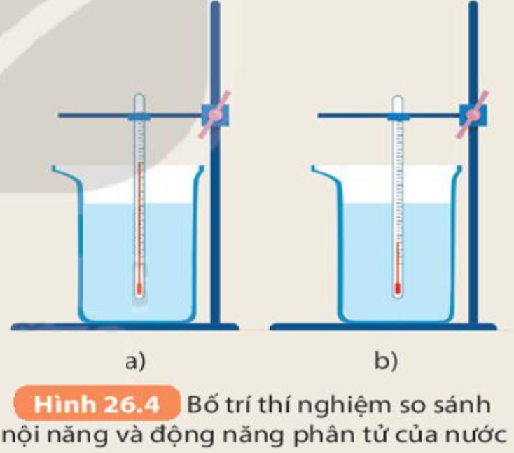 1. So sánh động năng của phân tử nước ở Hình 26.4a với động năng của phân tử nước ở Hình 26.4b.