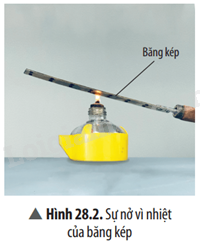 Bước 1: Hơ đều băng kép trên ngọn lửa đèn cồn trong khoảng 3 – 4 phút (Hình 28.2). Quan sát băng kép.