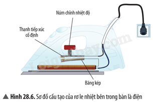 Giải thích cách hoạt động của rơ le nhiệt trong bàn là điện (Hình 28.6).