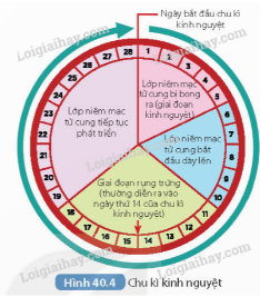 Dựa vào thông tin trong Hình 40.4, em hãy mô tả sự thay đổi độ dày niêm mạc tử cung trong chu kì kinh nguyệt. Theo em, sự thay đổi này có ý nghĩa gì?