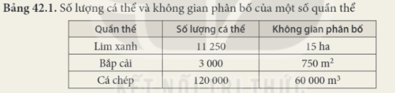 Dựa vào thông tin trong bảng 42.1, hãy xác định mật độ cá thể của mỗi quần thể được nhắc đến. |