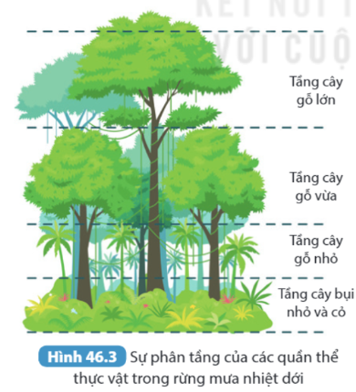 | Quan sát hình 46.3, cho biết sự phân tầng của các quần thể thực vật trong hình phù hợp như thế nào với điều kiện môi trường. |