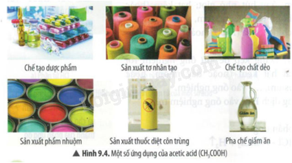 Quan sát Hình 9.4 và 9.5, cho biết mmột số ứng dụng của acid.