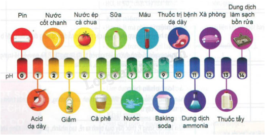 Hình vẽ sau đây giới thiệu các giá trị pH của một số sản phẩm hằng ngày