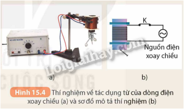 1. Khi đóng công tắc K để dòng điện xoay chiều chạy qua cuộn dây thì đinh sắt bị hút lên, chứng tỏ dòng điện có tác dụng từ
