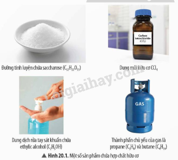 Quan sát các hình 20.1, 20,2, em hãy cho biết các hợp chất hữu cơ nhất thiết phải có nguyên tố nào?