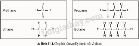 Hãy viết công thức phân tử, công thức cấu tạo thu gọn và cho biết đặc điểm cấu tạo các alkane ở Hình 21.1