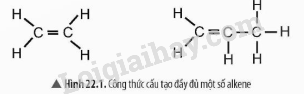 Hãy viết công thức phân tử và công thức cấu tạo thu gọn của các alkene ở hình 22.1