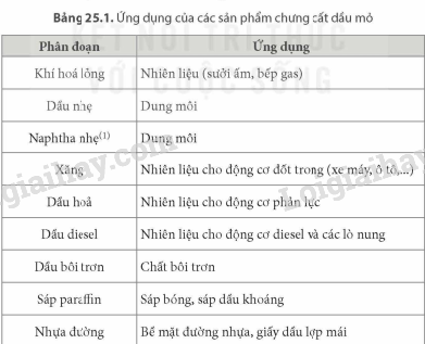Quan sát các loại nhiên liệu khác nhau trong Bảng 25.1 và cho biết ứng dụng của các loại nhiên liệu này trong cuộc sống hằng ngày.