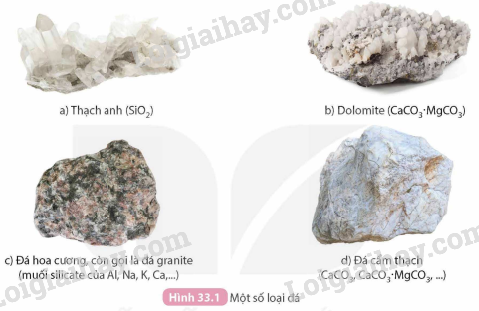 1. Các loại đá trong hình được tạo thành chủ yếu từ các nguyên tố hóa học nào?