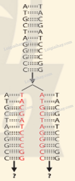 Hình bên minh họa kết quả tái bản của một đoạn phân từ DNA. Hãy vẽ hình minh họa kết quả quá trình tái bản thêm một lần nữa của hai đoạn phân tử DNA con vừa mới tạo thành