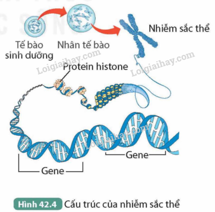 1. Mỗi NST trong tế bào ở Hình 42.4 chứa rất nhiều phân tử DNA.
