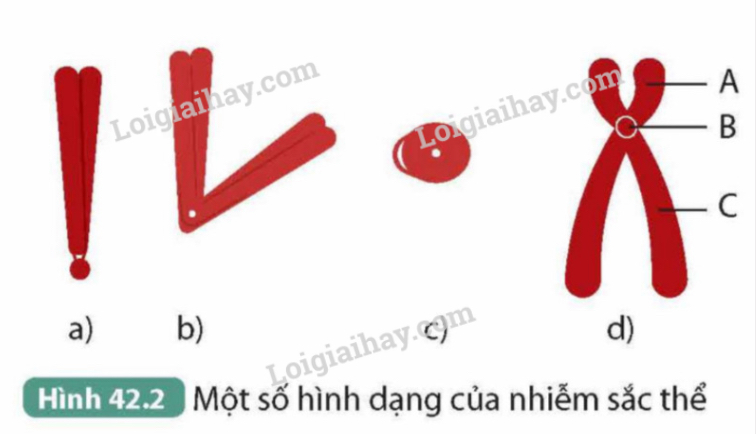 1. Mô tả hình dạng và gọi tên vị trí tâm động của mỗi NST trong hình 42.2a, b, c, d.