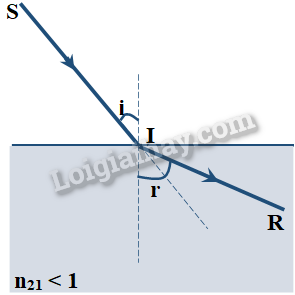 + Nếu n21 > 1 thì đường đi của tia khúc xạ trong môi trường (2) đi gần pháp tuyến của mặt phân cách hơn tia tới.