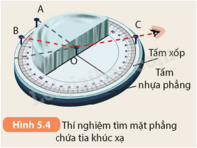 - Bỏ bản bán trụ thuỷ tinh ra, dùng tấm nhựa phẳng để kiểm tra các tia BO, OA, OC có đồng phẳng