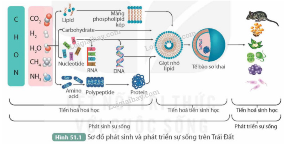 1. Quá trình phát sinh và phát triển sự sống trên Trái Đất gồm 3 giai đoạn: