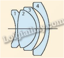 Để nâng cao chất lượng hình ảnh, ống kính máy ảnh là một hệ gồm nhiều thấu kính được ghép với nhau. Hãy chỉ rõ các thấu kính hội tụ và thấu kính phân kì trong ống kính máy ảnh dưới đây.