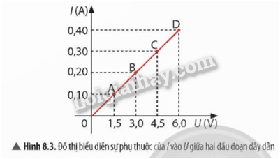 1. Tiến hành thí nghiệm (Hình 8.2), từ đó nêu nhận xét về sự phụ thuộc của cường độ dòng điện vào hiệu điện thế giữa hai đầu đoạn dây dẫn.