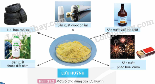 Một số ứng dụng của lưu huỳnh: lưu hóa cao su, sản xuất dược phẩm, sản xuất sulfuric acid, sản xuất thuốc diệt nấm, sản xuất pháo hoa, diêm