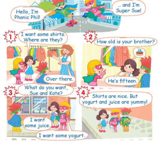 Sue: I want some yogurt. (Mình muốn một ít sữa chua.)