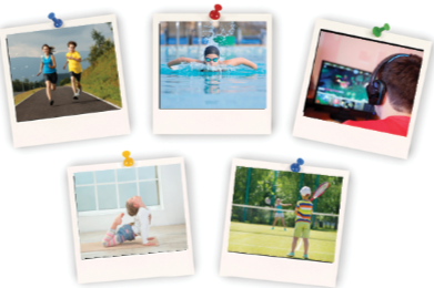 (Em đang làm một bảng câu đố về các hoạt động trong thời gian rảnh rỗi để tìm ra “linh vật” của em. Làm việc theo cặp. Thêm ba hoạt động nữa và sau đó hỏi bạn em để hoàn thành câu hỏi.)