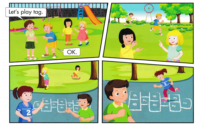 Let’s play hopscotch.(Chơi nhảy lò cò nào.)