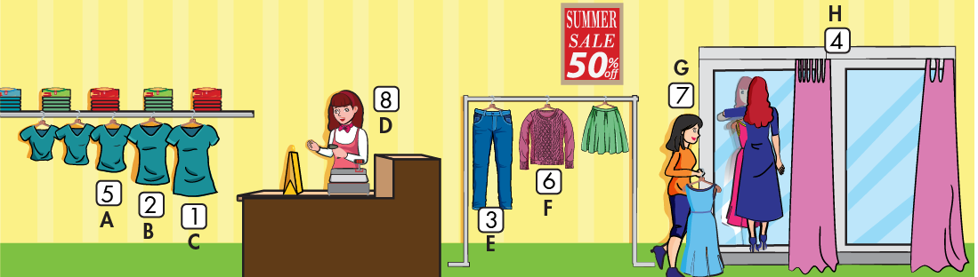 (Một trợ lý bán hàng làm việc trong một cửa hàng.)