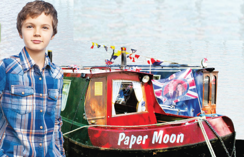 Canal boats are long, thin boats. Our boat is red and green, and its name is "Paper Moon". It isn't very big, but it is very cosy.