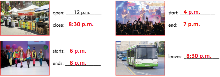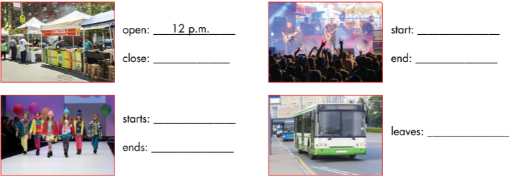 Listen and write the times for each picture.