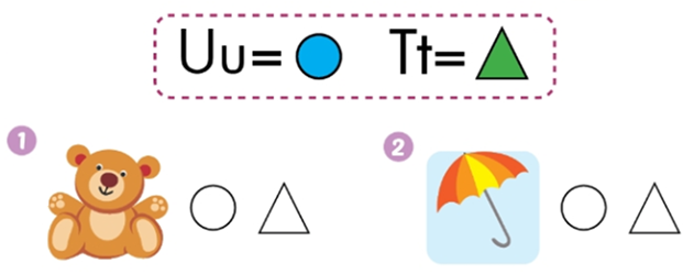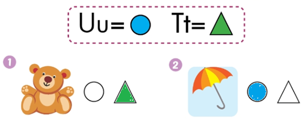 (Nói các âm. Tô màu các hình dạng đúng.)
