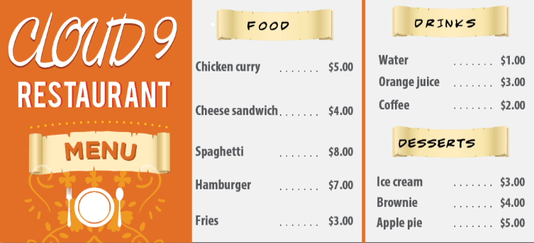 A: Would you like to see the menu?