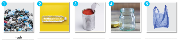 1. Don’t use plastic bags. 2. ________________ plastic bottles. 3. ________________ old newspapers. 4. ________________ papers in the park. 5. ________________ old cans to grow flowers in. 6. ________________ old clothes. |